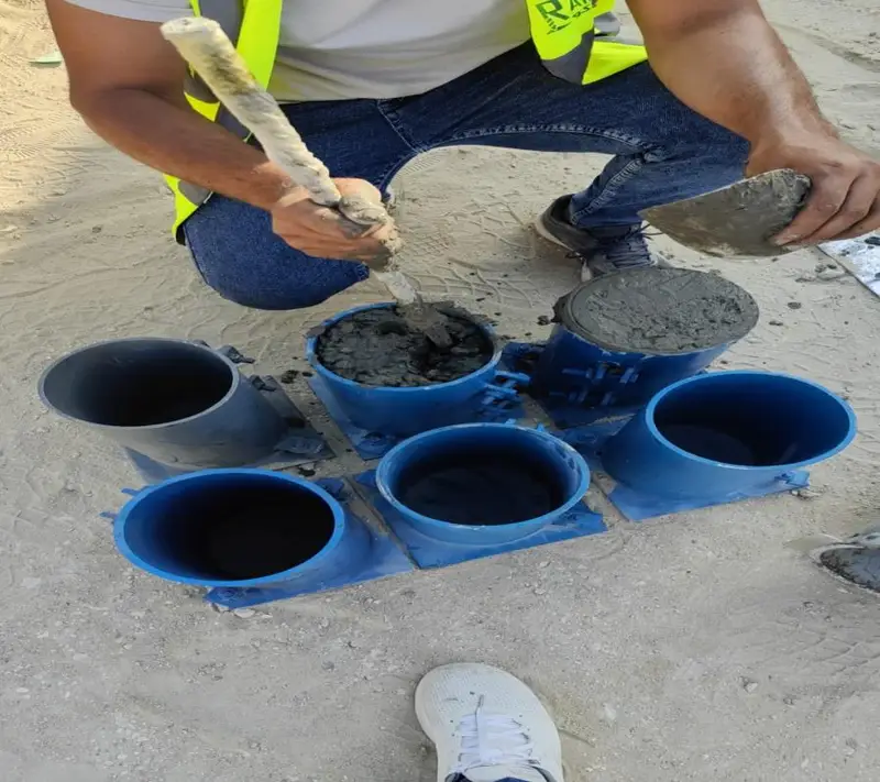 نحن في مختبر رامسسكو نحرص على اتباع خطوات دقيقة في اختبار الخرسانة لضمان تقديم أفضل النتائج لعملائنا: